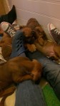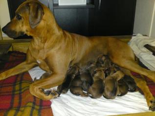 Og forsommeren ble brukt til å lese og lære mest mulig om valper, sosialisering og ikke minst enda mer om rasen. Jeg var kjempespent på hvordan kullet utviklet seg i lynne, helse, kropp og farge. Vi ønsket nemlig en med god og mørk snute, men likevel innenfor rasestandard. Forberedelsestiden gikk sakte. Jeg besøkte Åse Berit og Jahn som bor like ved oss og som har en ung Rhodesian Ridgeback, Amy. Vi reiste også på en hundeutstilling for Rhodesian Ridgebacks på Malungen. Der fikk vi hilse på Kennelens andre tispe, Tallulah, og vi gledet oss til vi skulle hilse på valpekullet.