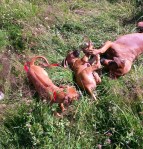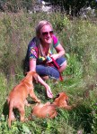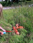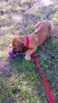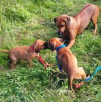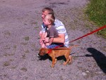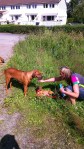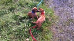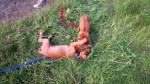 Og framme på hytta i Risør ble det litt turgåing og hopp og sprett i valpebinge og i bånd. Hun har pipet veldig lite og ser ut til å trives. Vi har til og med introdusert henne til klikkertrening og matspising uten konkurranse fra andre hunder. Og etter på sluknet hun pladask i alle lekene. Vi gleder oss til dagene og årene som kommer.
