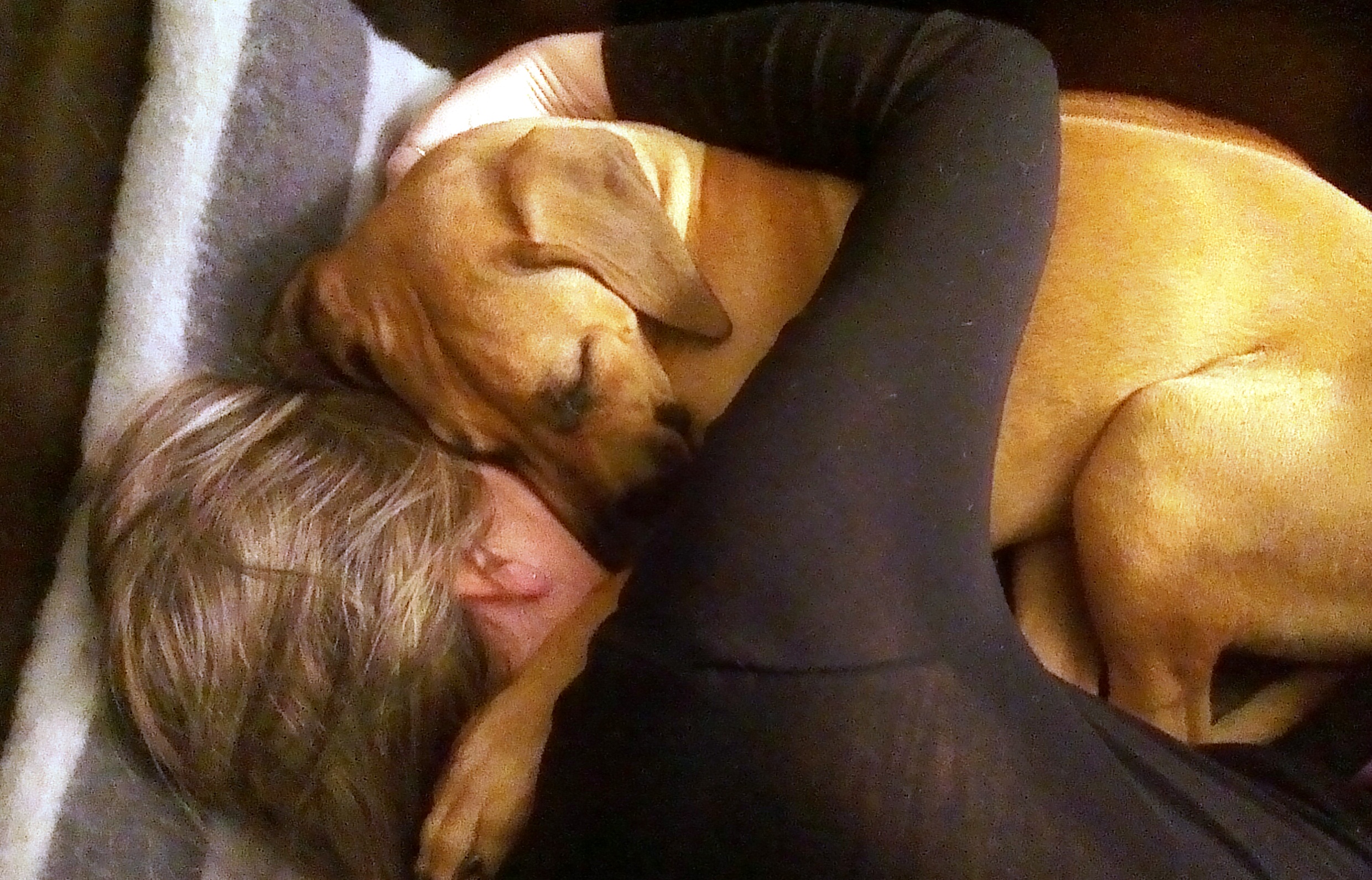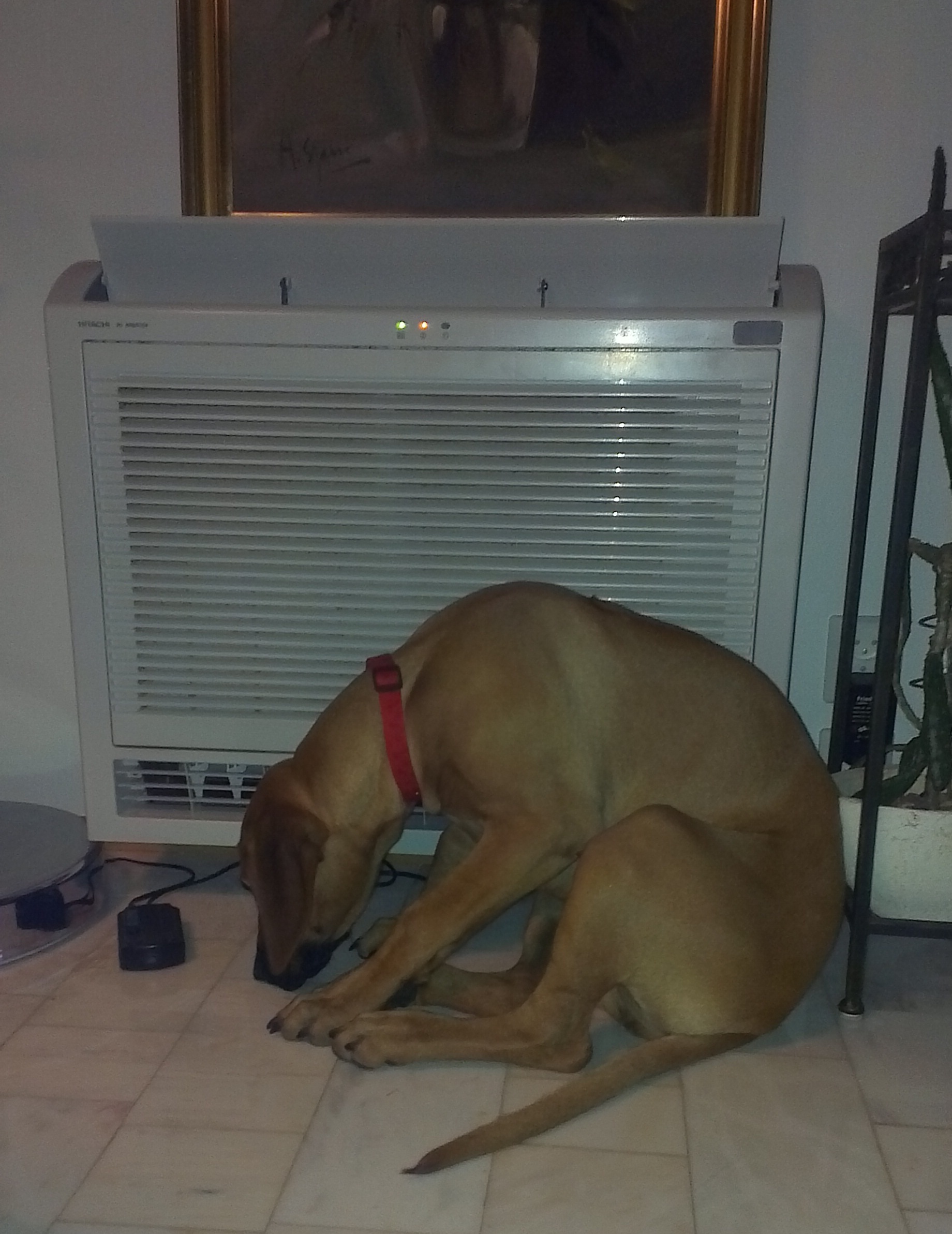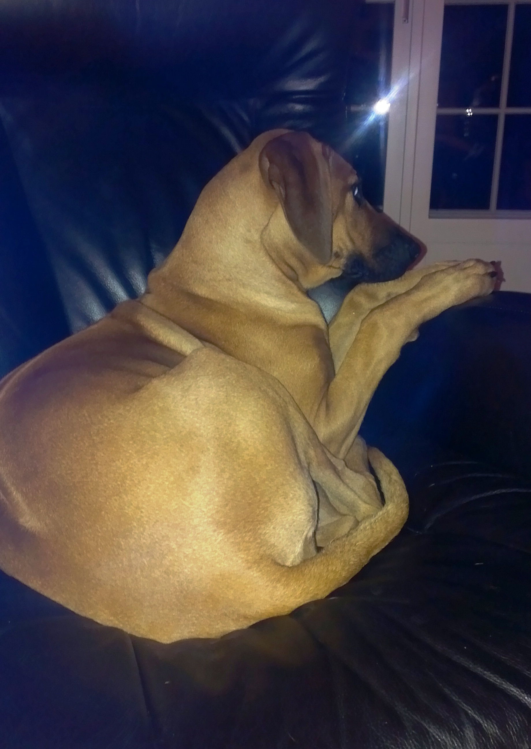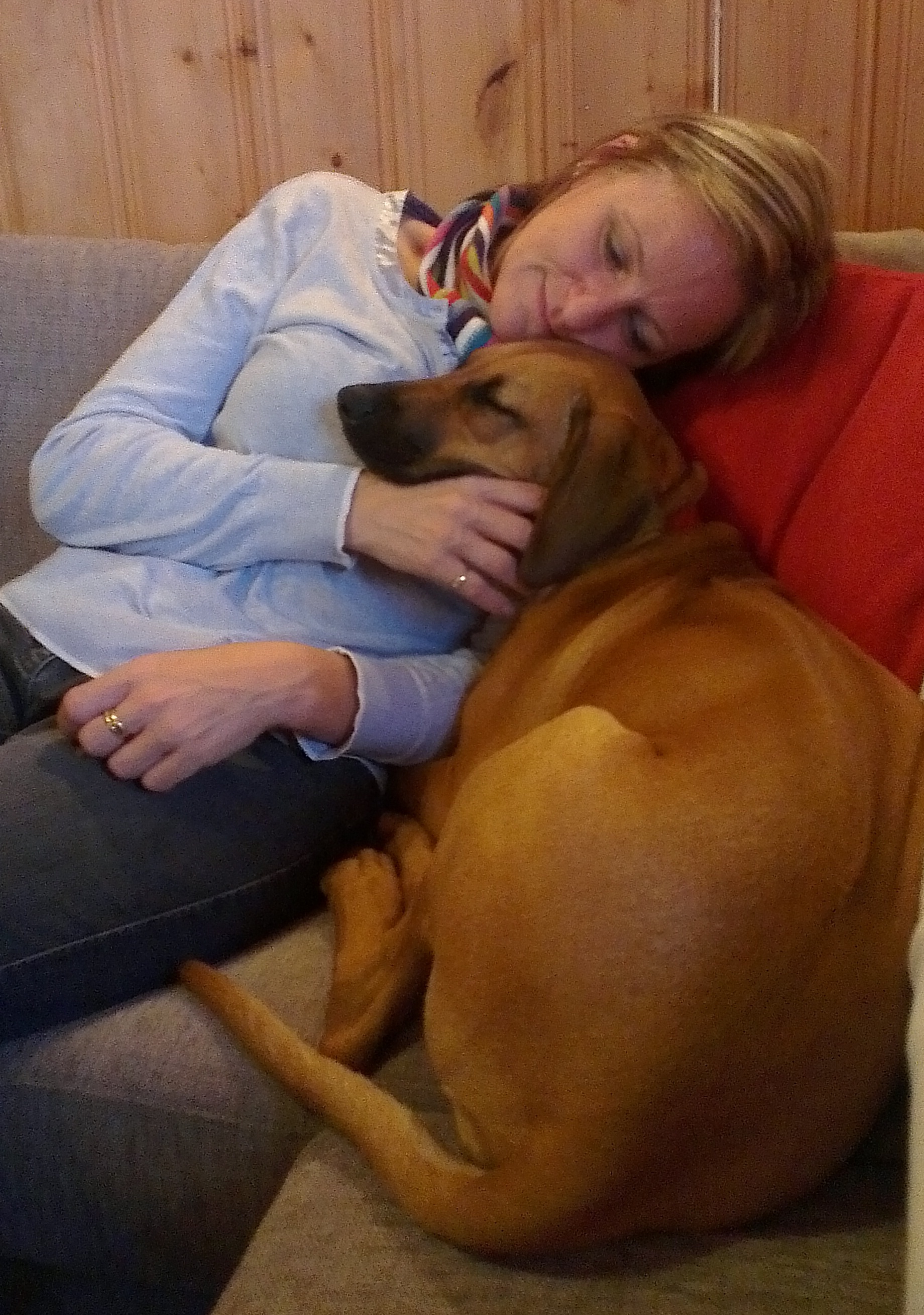 Matmor begynte på ny jobb, så jeg fikk bli med dit for å bli kjent med området, liksom. Og der traff jeg noe rart … de kalte det en katt. Den hadde nesten samme farge som meg, men var mye flinkere enn meg til å klatre… (og ingen må tro jeg ikke har prøvd!). Og så er vi av og til i en hundehage og leker med andre hunder. Det er skikkelig fint å ha noe fornuftig å bruke all den energien jeg lader opp til i sofaen. Men jeg blir helt utslitt og må lade litt ekstra når jeg kommer hjem.