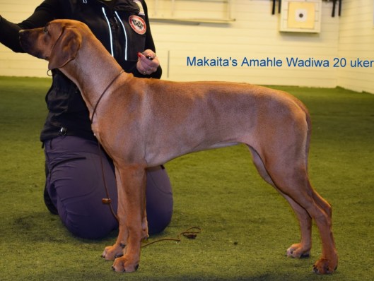 Wadiwa (dam: Afland’s Bushira Shalita Sire: Anzantras Howlin Pelle Nasir) sin kritikk: 4mnd tispe, bra størrelse, flott helhet, bra hode og uttrykk, Skalle under utvikling, meget bra hals og nakke for alder, fin kroppslengde, tilstrekkelig brystdybde, velansatt og velb. hale. Solid bakpart, robust benstamme, utmerkede poter, sterke mellomhender, korrekt ridge, bra pels og farge, beveger seg glimtvis 🙂 meget rasetypisk. Hoppende glad og utadvendt.