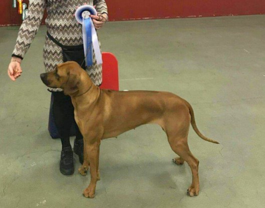 Dommeren synes Nikki var både lekker og velvinklet. Lillesøstera mi måtte dessverre dele kroner med storesøster Kamali, så de har bare en hver, men det var gøy å løpe venstresvinger sammen med henne. Det var herlig gulv å løpe på så vi løp masse uten å skli. Da er det gøy å være ridgeback. I Sandefjord følte jeg meg nemlig litt som Bambi på glattisen.