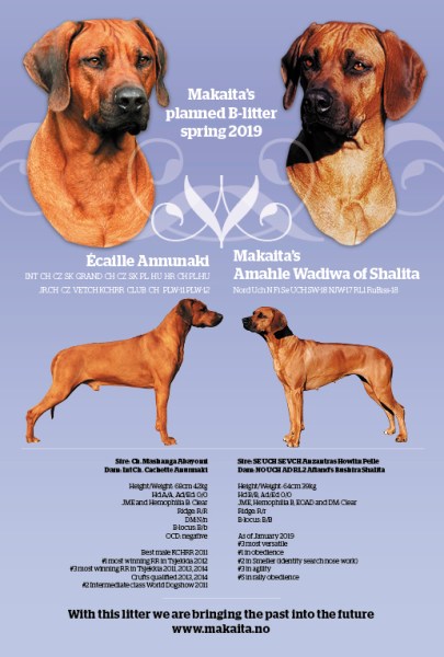 Wadiwa, fra mitt første kull, er foruten å være Norges mestvinnende ridgeback i utstillingsringen 2018, også blant landets beste i Lydighet (#1), Agility (#3), Smeller (#3) og Rallylydighet (#5). Og av klubbens ca 250 konkurrerende hunder, ble hun den tredje mest allsidige av dem alle. Det er jeg utrolig stolt av.