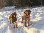 Vinteren med rundt 15 kuldegrader gjør noe med oss alle. Vi går alltid 3 turer hver dag. 2 korte og en lang. Nå kreves det masse klær til både to-og firbeinte.