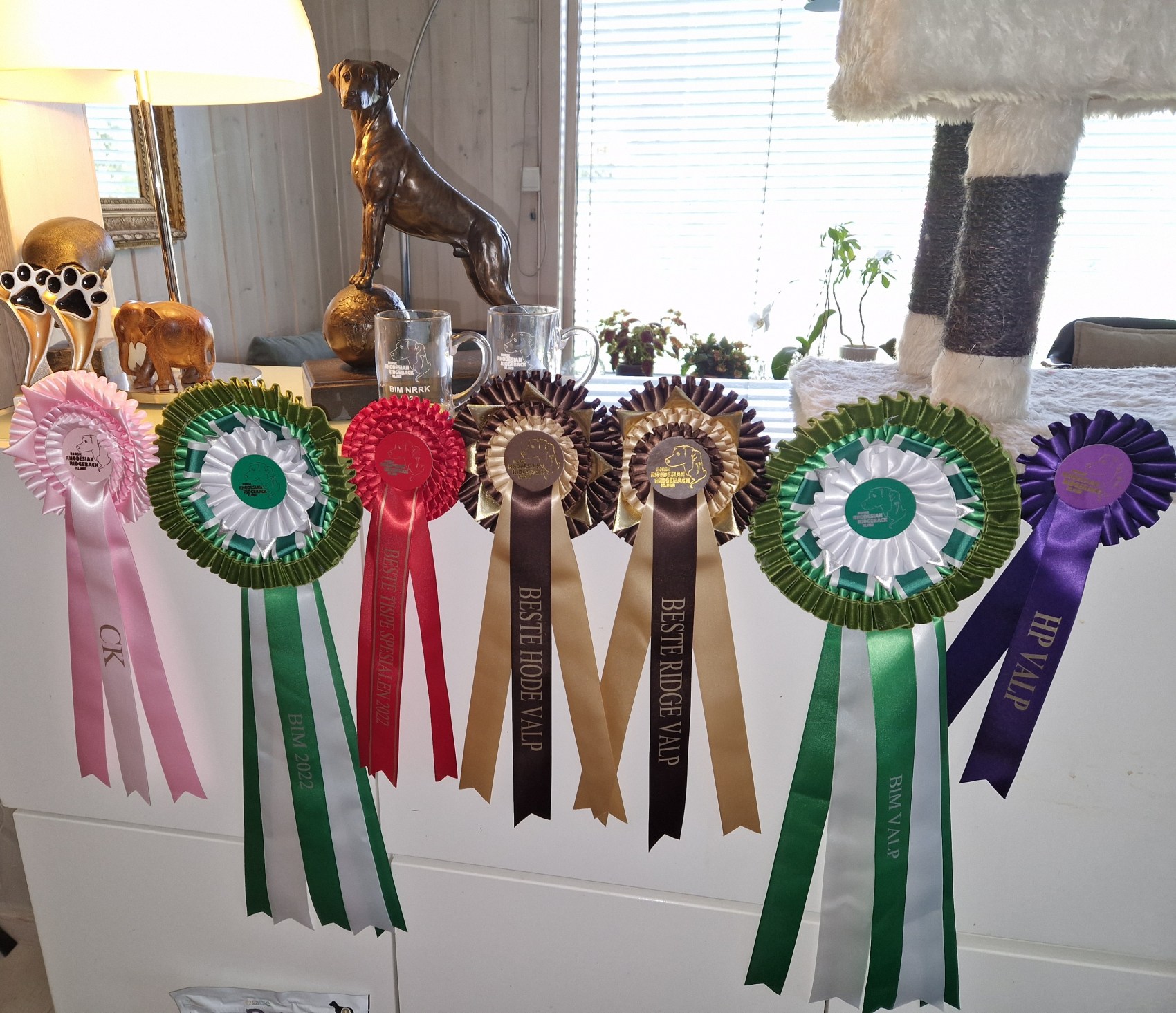 Fra rosettveggen har hennes yngste datter, Kamoto, spist opp 2 internasjonale cert og en beste rasespesialtispe rosett, så kanskje det betyr at hun, Kamoto, som ble beste tispevalp på helgens rasespesialen har tenkt å bli like vakker som sin mor? Time will show, og jeg gleder meg stort til turen videre.