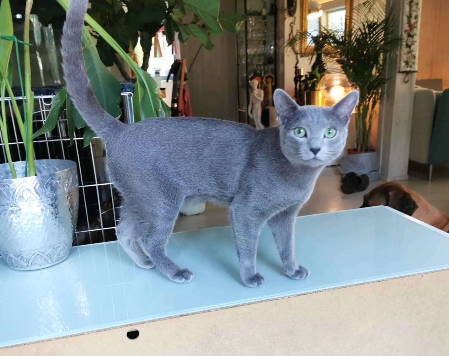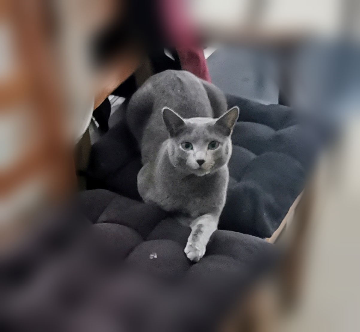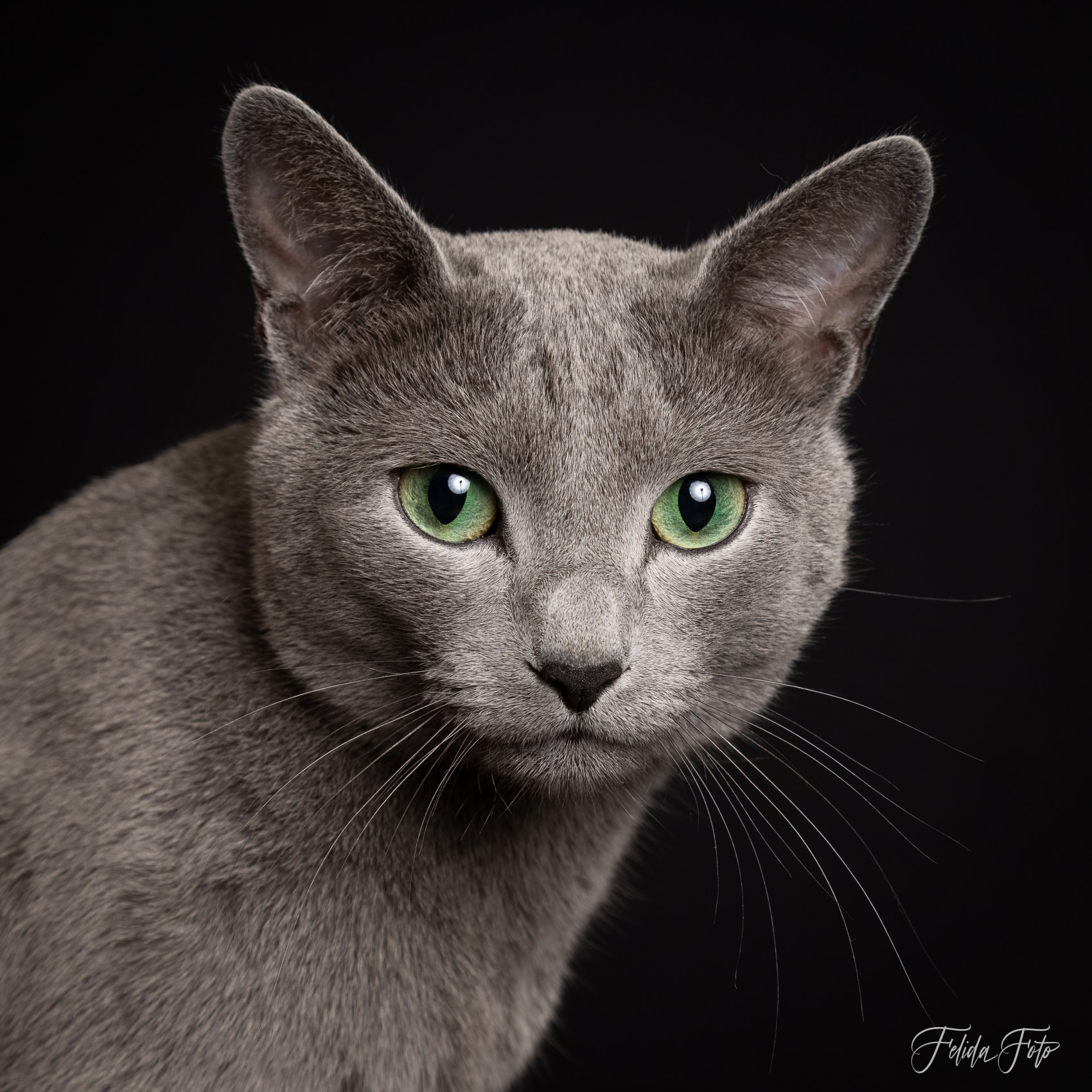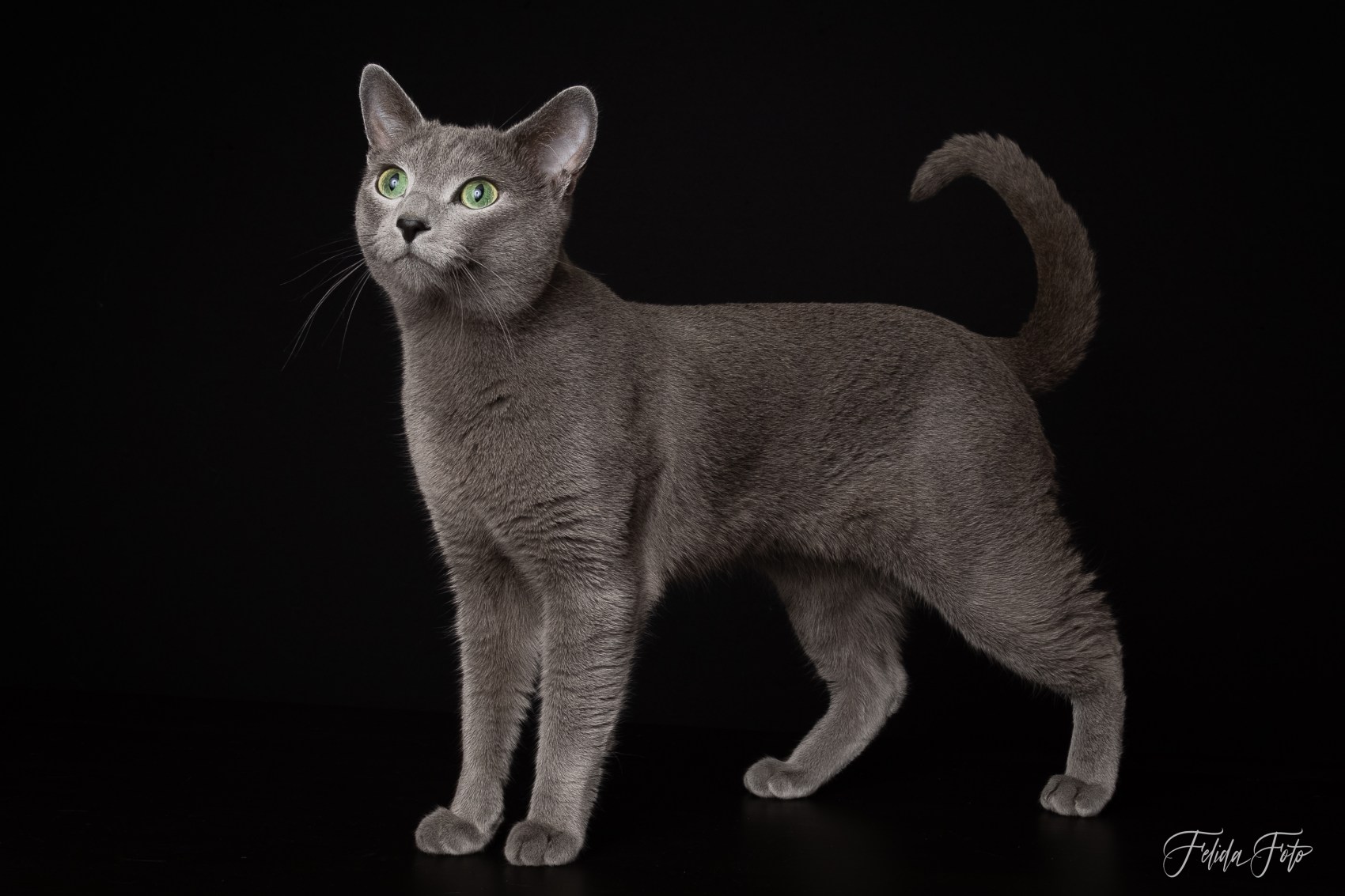 Julian er en flott rasetypisk skandinavisk Russian Blue, utrolig sosial, vokal og med super pels, middels grønne øyne og sterk vilje.