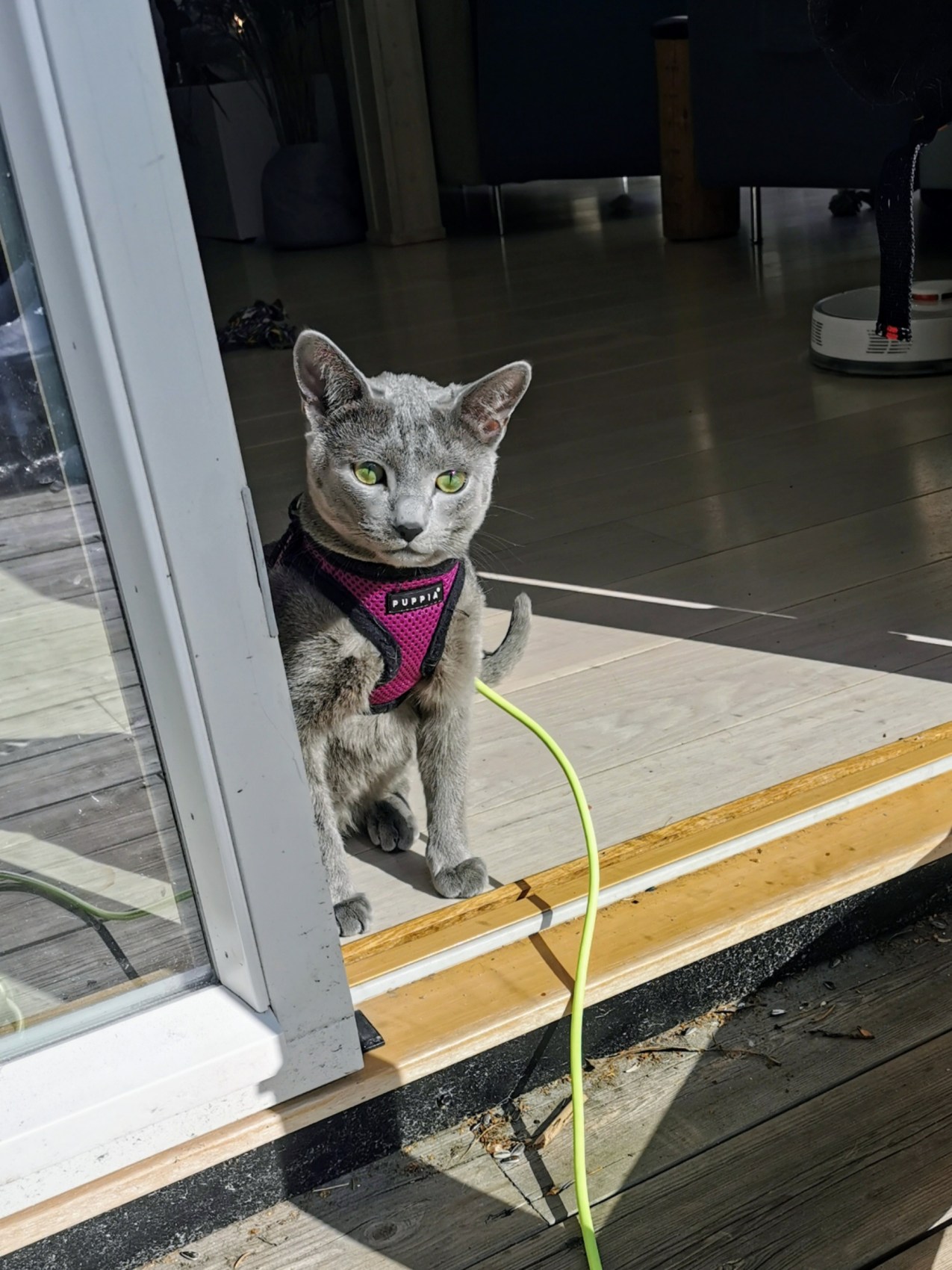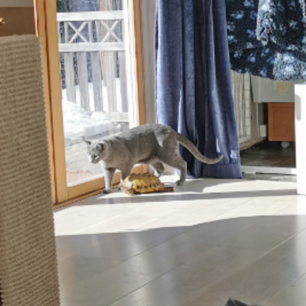 Juluan var utekatt fra, han var 12-16 måneder gammel, men nå er han kun ute i kattegårdene våre på 16m2 og 20m2.