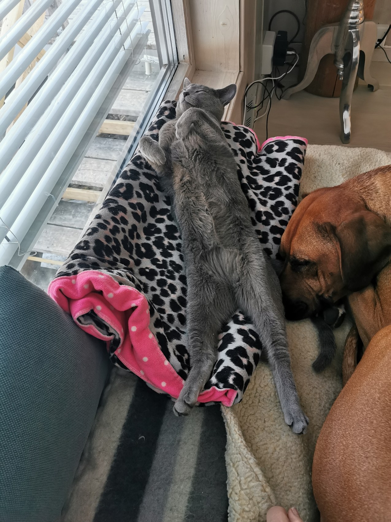 Hjemme er han helt fantastisk. Han blir gjerne med på byvandring i sele, sitter timesvis på en benk med meg og ser på mennesker, hunder og sykler som passerer oss. Når vi har besøk, er han førstemann til å sjekke ut gjestene, men koser seg lite i armskroken min etter at vi fikk Naja.