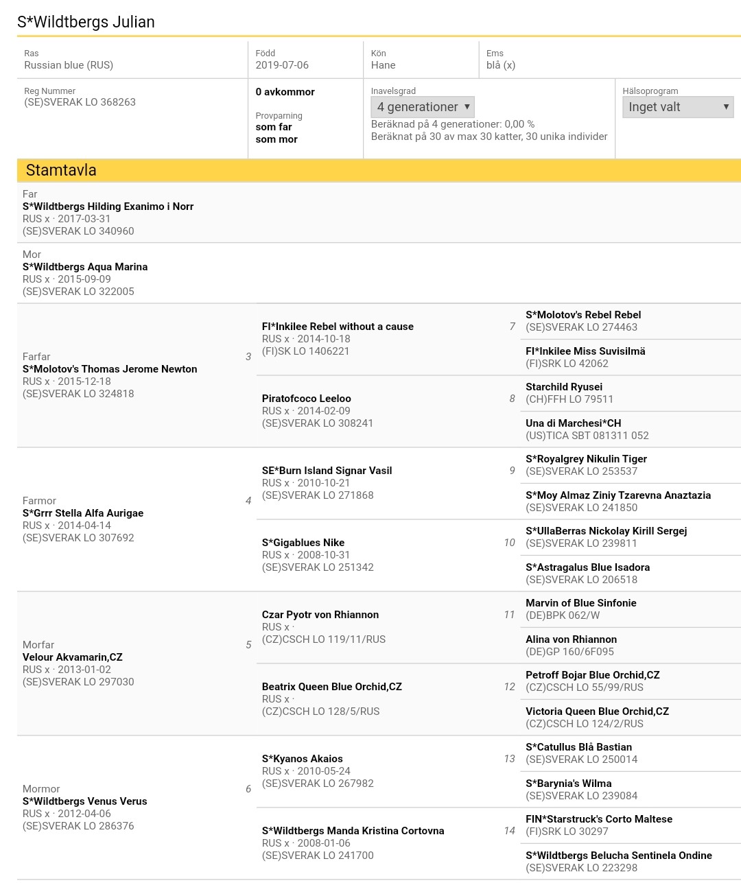Stamtavle/pedigree pedigree/cfa